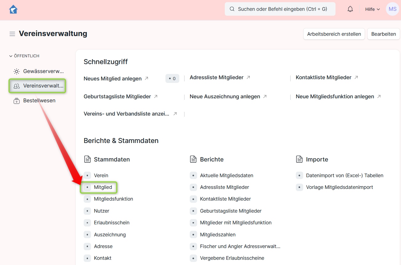 2. Einen Erlaubnisschein aus der der Mitgliedsansicht heraus erstellen